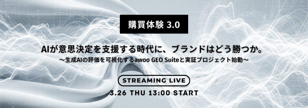 本セミナーでは、ECを取り巻くGEOの最新動向を整理するとともに、生成AI上のブランド評価を可視化する新プロダクト「awoo GEO Suite」と「GEO実証プロジェクト」をいち早くお披露目します。