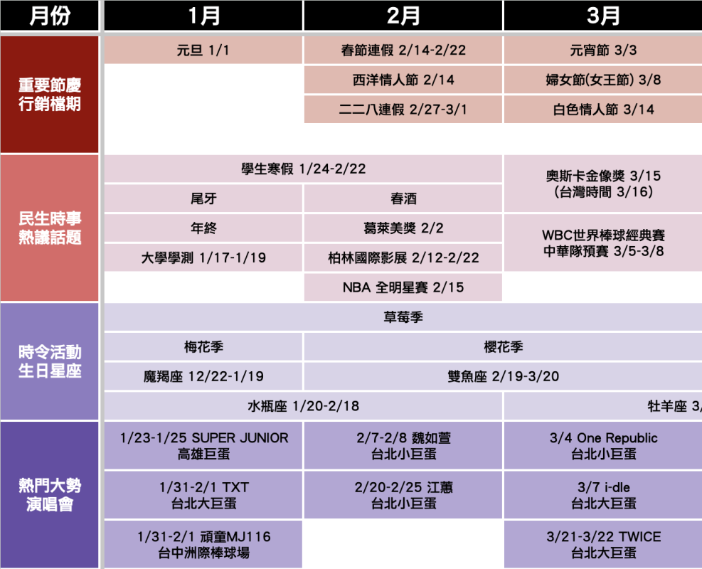 Q1 第一季行銷重點 —— 春節、情人節、世界棒球經典賽、38 女王節