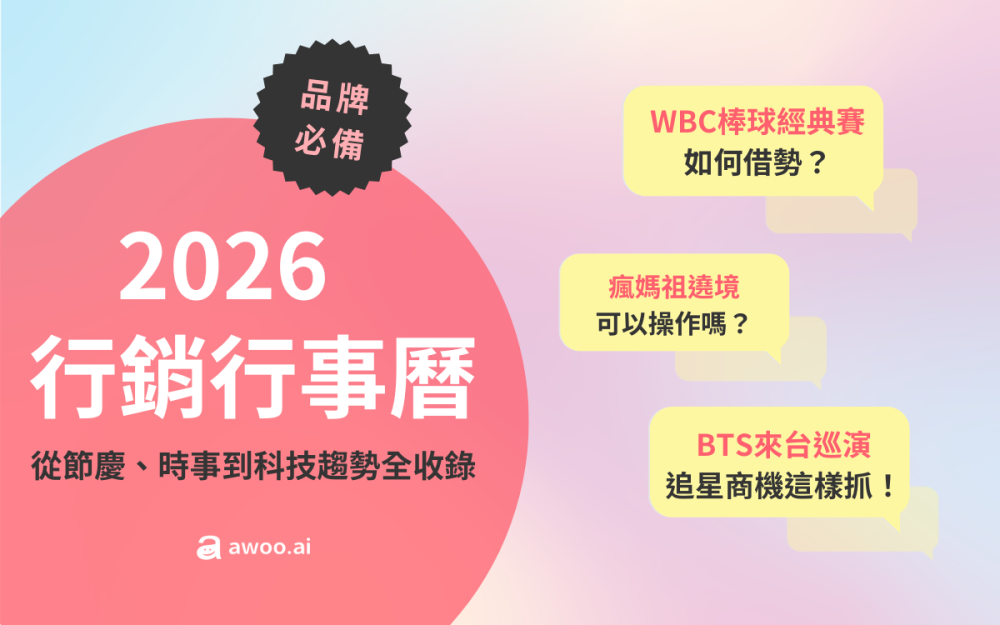2026 年的行銷不再只追求關鍵字流量,而是追求「AI 能見度」與「品牌溫度」的平衡,期望品牌善用 AI 工具的同時保留「人味」與「真誠」,結合這份行事曆攻略,必定能在激烈的競爭中脫穎而出!