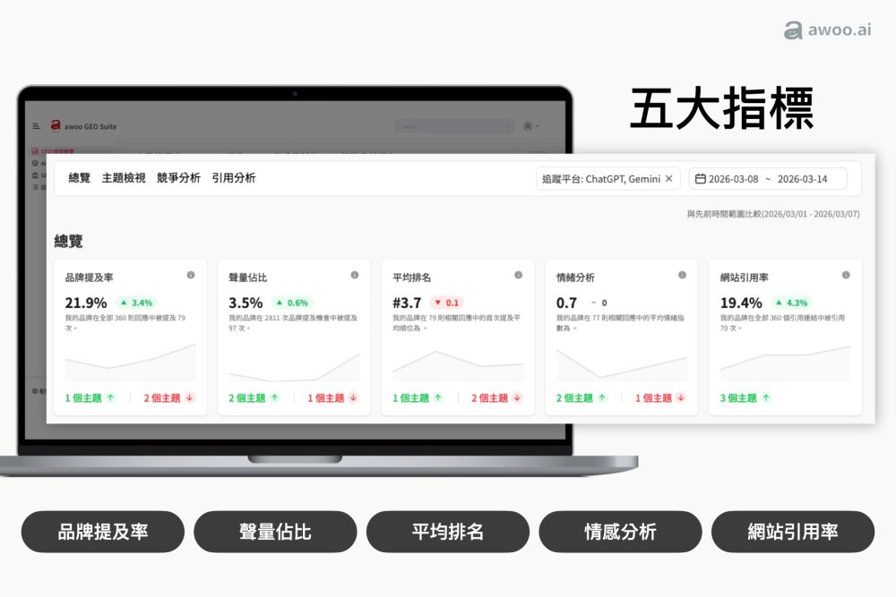 一、五大指標總覽:快速掌握品牌 AI 能見度
