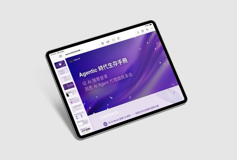 當 AI 不只能理解語意,還能代理用戶訂餐廳、買機票、挑選最合適的保養品時,品牌如果不能被 AI 理解與信任,就如同在消費者的視野中徹底「隱形」!這本電子書將帶你穿透 Google 搜尋變革 ── AI Mode 的技術底層,預見 AI Agent 的代理未來。我們不只要談趨勢,更要告訴你如何透過 GEO 生成式引擎優化,為代理商務打下不可撼動的穩固基礎。